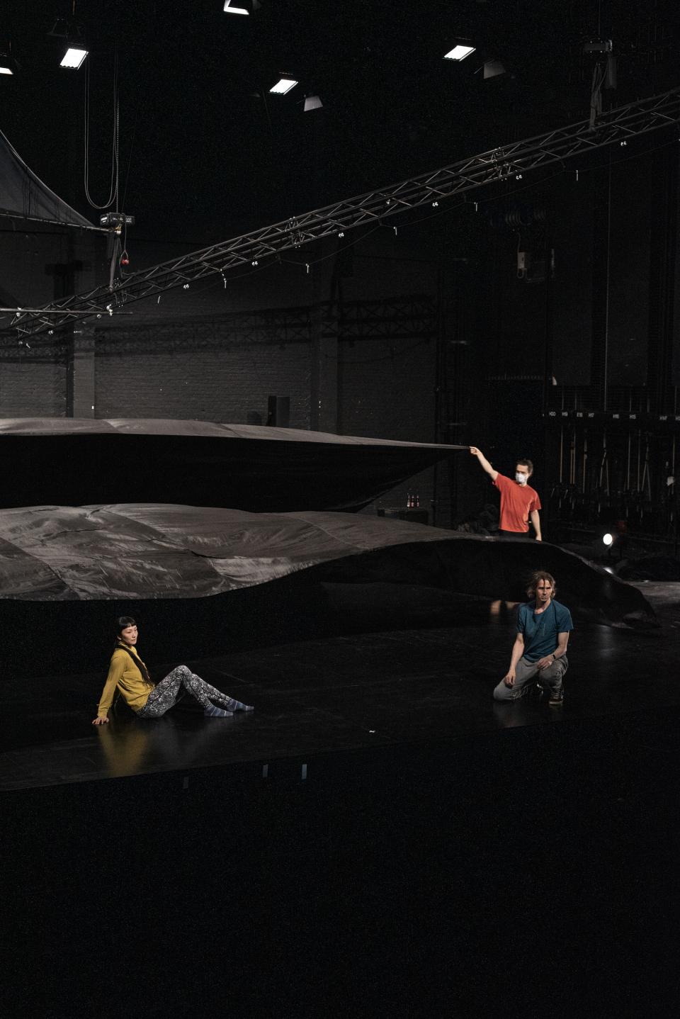 12 – 19/03. In March, we welcomed Fieldworks to our big stage. There, the company of Heine Avdal and Yukiko Shinozaki worked on Gone here (yet) to come: an investigation of the materiality of darkness and its relation to space(s). How do we make darkness tangible? Which other realities, encounters, and connections become possible in the dark? Keep an eye on our calendar for performance dates!