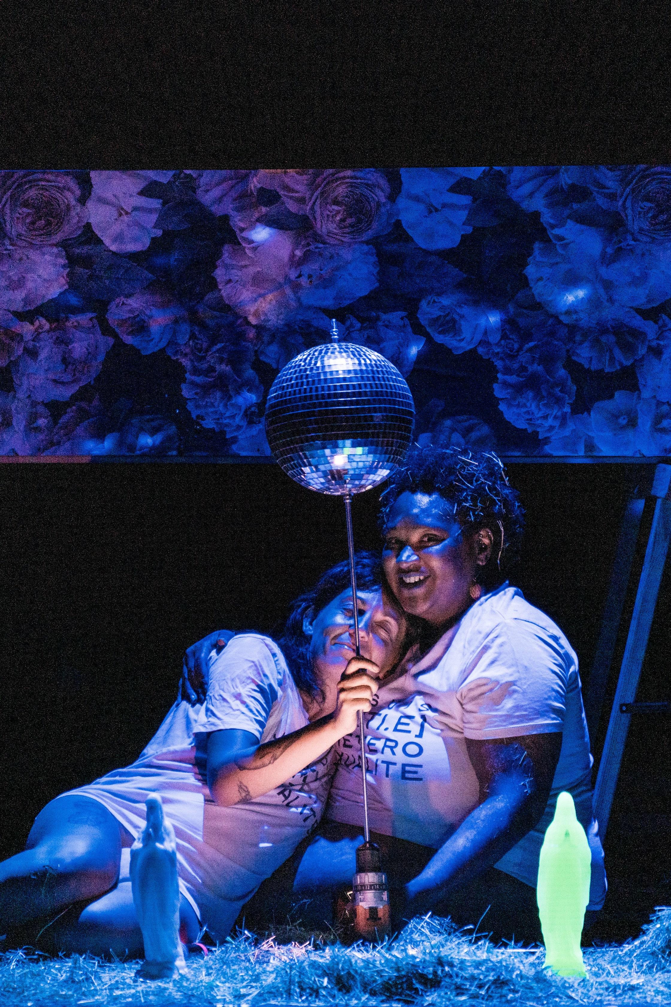 texts and direction Sandra Calderan and Rébecca Chaillon | stage management Suzanne Péchenart | dramaturgy and collaboration in staging Céline Champinot | scenographic collaboration Camille Riquier | production Cie Dans Le Ventre, Cie des Hauts Parleurs | co-production CDN de Besançon Franche-Comté | with the support of T2G - Théâtre de Gennevilliers – CDN ; Villa Valmont - Lormont Nouvelle Aquitaine | the first version of this performance was presented in La Pop, in the framework of (Re)Mix festival | production & development Mélanie Charreton – O.u.r.s.a M.i.n.o.r & Malaury Goutoule | administration and tour logistics Élise Bernard& Amandine Loriol | Dans le ventre Company is supported by the Direction régionale des affaires culturelles Hauts de France – French Ministry of Culture