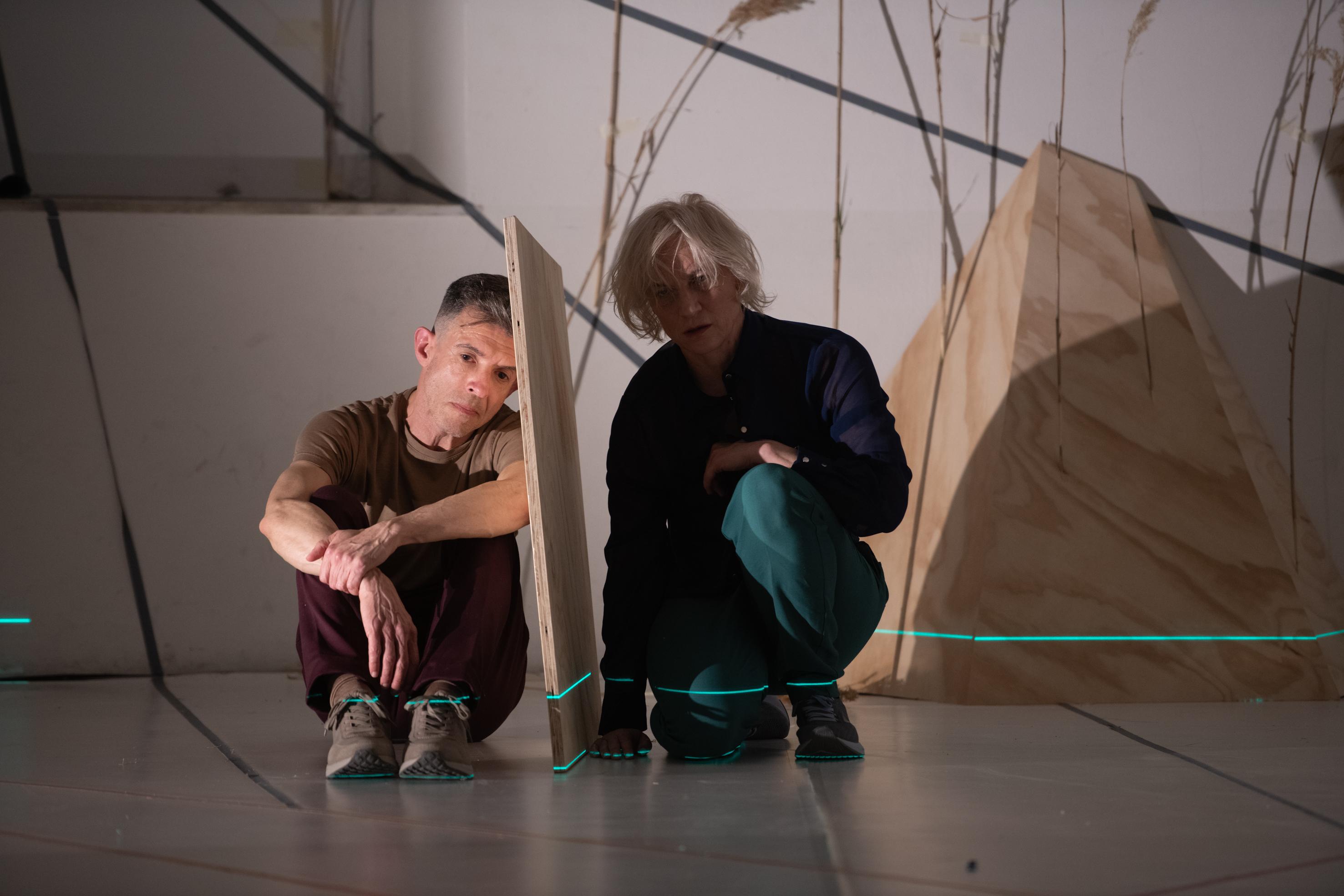 Beeldend kunstenaar Gaëtan Rusquet, geluidsontwerper Vincent Malstaf en lichtontwerper Frank Laubenheimer creëren een landschap dat, net als de Nuraghe-ruïnes, uit de toekomst zou kunnen komen. Of zelfs buiten de tijd zou kunnen bestaan. In deze ruimte graven Camacho en Stuart artefacten van emotie op. Daarbij zoeken ze naar contrast in maat en schaal: minimalistische houdingen branden van gevoel, woede en kracht worden samengebald en ingehouden. Met hun stemmen kanaliseren ze een verloren taal en weven ze verbindingen tussen universa. Ze ontmoeten elkaar in ritme en herhaling, spoelen terug en versnellen, coderen en ontcijferen, maken én verbreken patronen. Door te luisteren naar het verleden, construeren ze een archeologie van het heden waarin het onderscheid tussen het mystieke en het alledaagse niet van tel is.